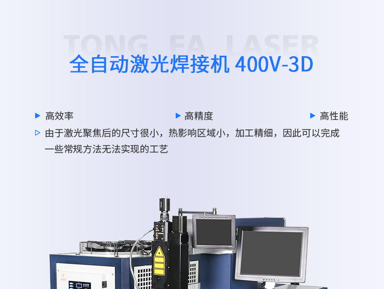 TFL-400V/500V-3D激光焊機(jī)是一款高穩(wěn)定性、大功率的焊機(jī),滿足長(zhǎng)時(shí)間生產(chǎn)的需要。大功率激光電源,大功率散熱系統(tǒng)滿足24小時(shí)大批量生產(chǎn)。機(jī)身采用高強(qiáng)度結(jié)構(gòu),保證精度、性能穩(wěn)定。控制系統(tǒng)是專(zhuān)為激光焊接量身定做的專(zhuān)業(yè)4軸控制系統(tǒng),穩(wěn)定性高,易學(xué)易懂易上手。擴(kuò)展性強(qiáng),可結(jié)合流水線、光電傳感器、氣動(dòng)夾具等組合進(jìn)行全自動(dòng)無(wú)人值守式加工。