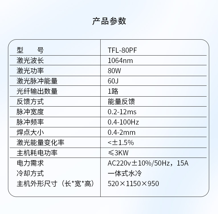 1、該設備采用升壓電源,不受電網波動影響,同時電源的單點能量輸出能力也更強。