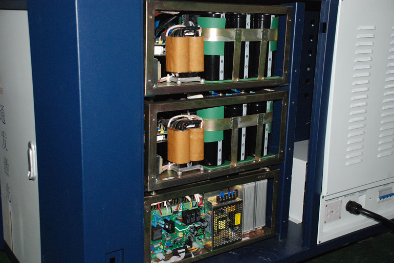 1、該設備采用升壓電源,不受電網波動影響,同時電源的單點能量輸出能力也更強。