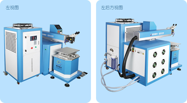 TFL-300Ⅲ型模具激光焊機是通發激光公司自主研發的一款大功率激光焊接機,采用通發自主研發的二代精密雙燈電源為燈泵浦驅動電源,配置觸摸屏,操作更方便。主機具備激光頭手搖升降與工作臺按鈕電動升降實現焊接不同厚度模具的激光焊加工。本款機型更適用于各類大功率、大面積激光修補的模具。由于激光功率大,同時可激光焊接鈹銅模具,鋁材模具或鋁材零件。在大面積激光修補模具時,可以使用更粗的焊絲,激光焊接效率大幅提升。
