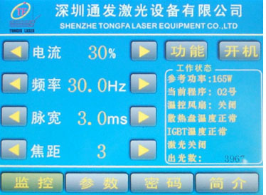 環(huán)境濕度:不高于80% 。因?yàn)楹笝C(jī)電源打開后,激光晶體就會持續(xù)的被冷卻系統(tǒng)冷卻,因?yàn)槔鋮s水一般會低于室溫,當(dāng)環(huán)境濕度過大的時候,而激光晶體的溫度又低于室溫,這時激光晶體的兩個端面上會凝結(jié)水霧,當(dāng)激光輸出的時候,這些水霧會大大降低激光輸出能量,而且這些附著在激光晶體端面上的水,干了以后,會在激光晶體的膜面上留下痕跡,這將會大大加快激光晶體膜面的老化。所以,為了防止這種情況的發(fā)生,冷水機(jī)的水溫設(shè)定,夏天不可以低于室溫3度,冬天不可以低于5度。