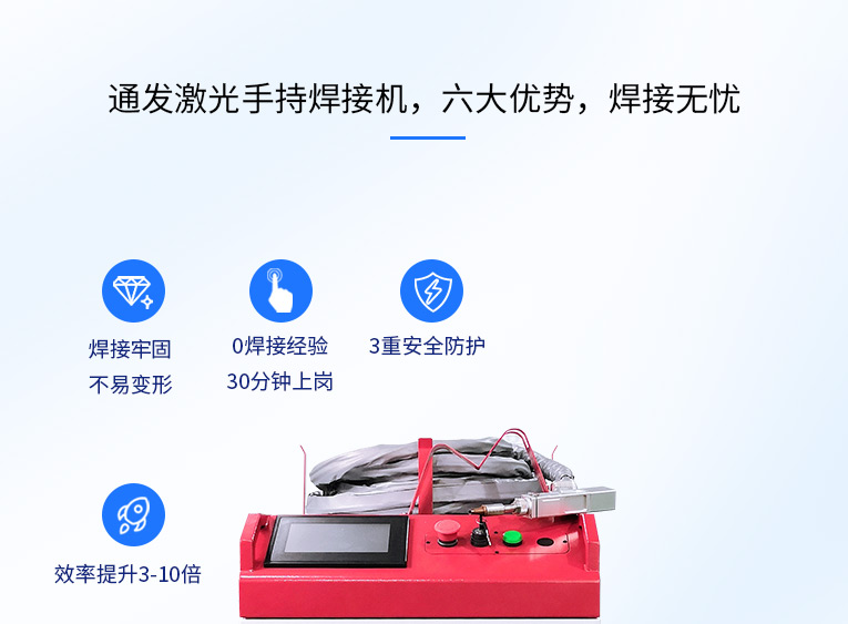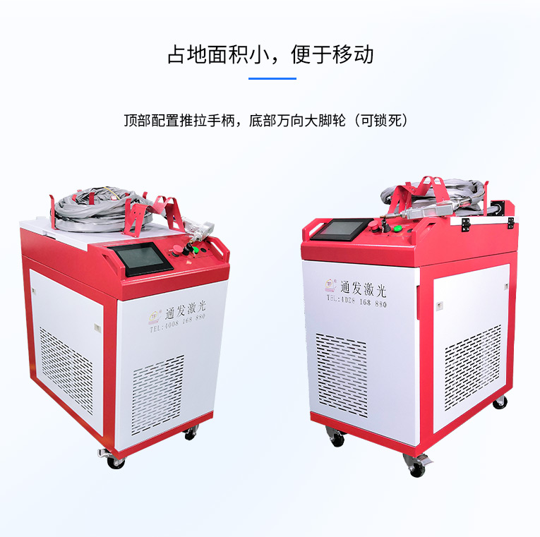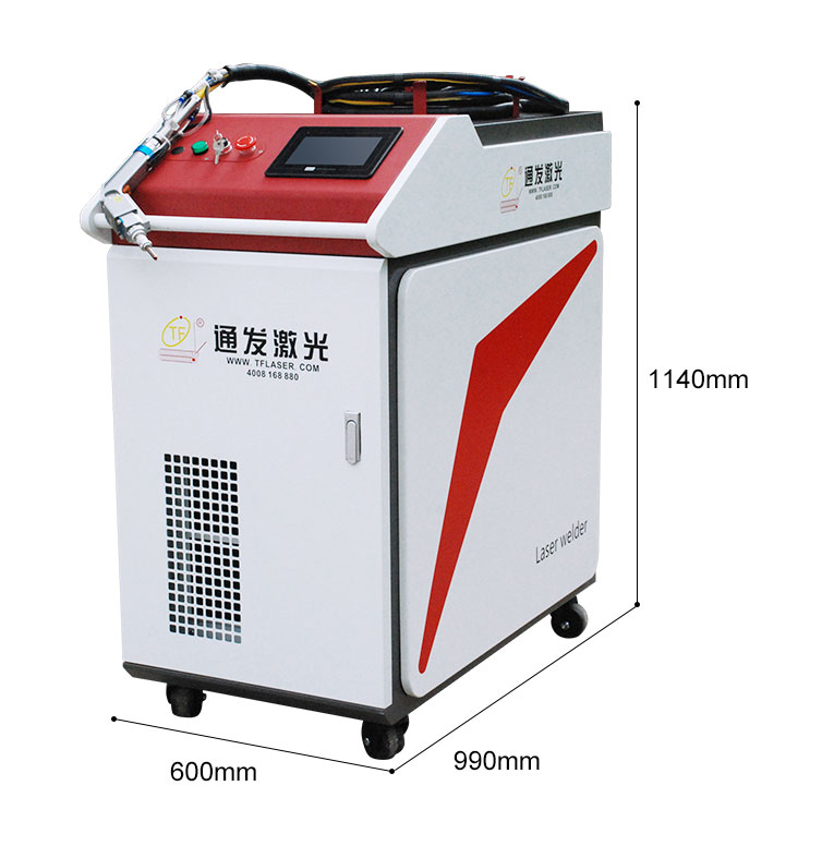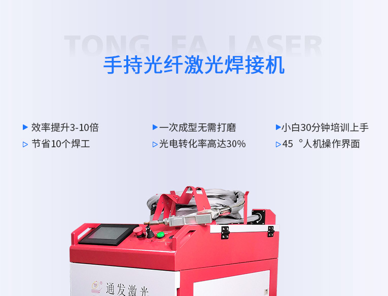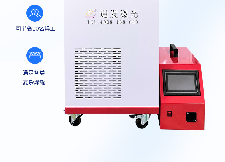 通發(fā)激光一體式手持式激光焊接機,用手持式焊接槍替代以前固定光路,手拿焊接,靈活方便,焊接距離更長,克服工作臺空間的局限性,工件尺寸不統(tǒng)一時無法自動焊接的情況下使用。主要針對大型工件、固定位置如內(nèi)直角、外直角、平面焊縫焊接、焊接時熱影響區(qū)域小,變形小、而且焊接深度大,焊接牢固。是遠距離焊接大工件的較為靈活的全新的焊接工藝。