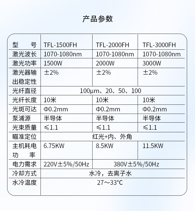 激光功率 1000W 1500W 2000W 3000W