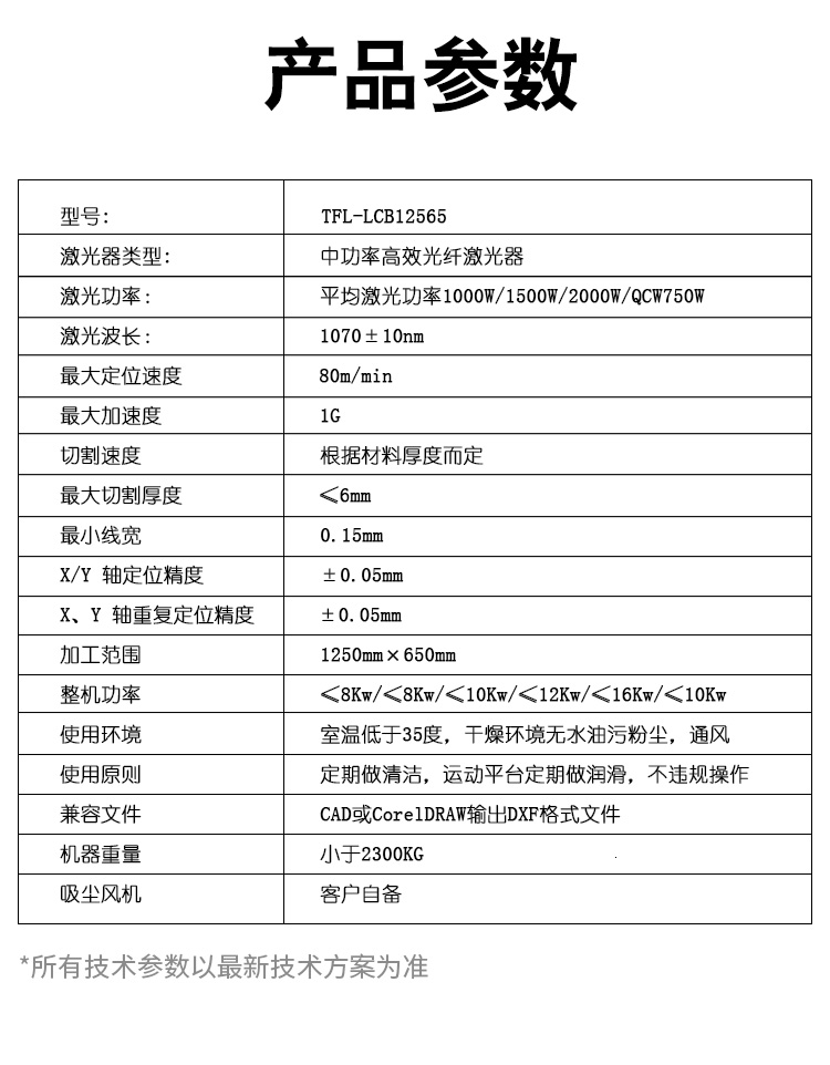 長期推薦最大切割厚度 ≤2mm (鋁板) ≤3mm (鋁板) ≤4mm (鋁板) ≤6mm (鋁板) ≤6mm (鋁板) ≤2mm (紫銅板)